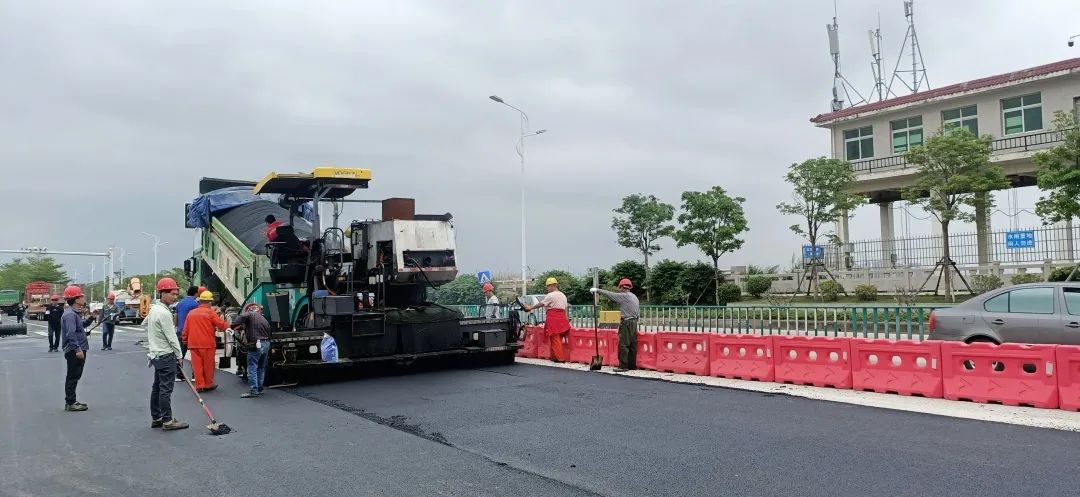 k1体育国投公司坚持“高效施工”原则,积极协调参建各方克服边通行边施工等倒运因素,仅耗时一个月就完成该路段左幅路面施工并实时投入使用。右幅路面建设受新冠疫情影响,停工将近两个月。为抢抓工期进度,k1体育国投公司协调各方增加人员及机械投入,并组织研究施工新工艺新技术,积极引进超薄一体摊铺机s1800-2sj,接纳高黏改性乳化沥青对桥面进行摊铺,将流水施工改为并行施工,快速跟进,缩短工期。在包管宁静和质量的前提下,各参建单位主动加班加点,仅耗时一个月就抢回因疫情延长的工期完成右幅路面施工,准时恢复双向通车。