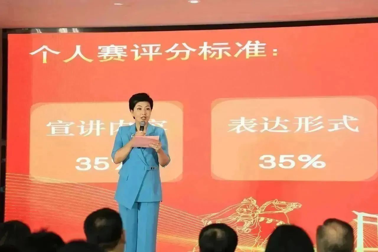 现场红旗飘扬、气氛热烈,在主持人的热情开场中,角逐正式拉开序幕!来自各企业的56名选手严阵以待,他们将通过“主题宣讲”“连词成段”的关卡考验,角逐21个奖项。现场观众也可通过“知识竞答”环节赢取个人纪念品,加入感满满!一起来围观吧!